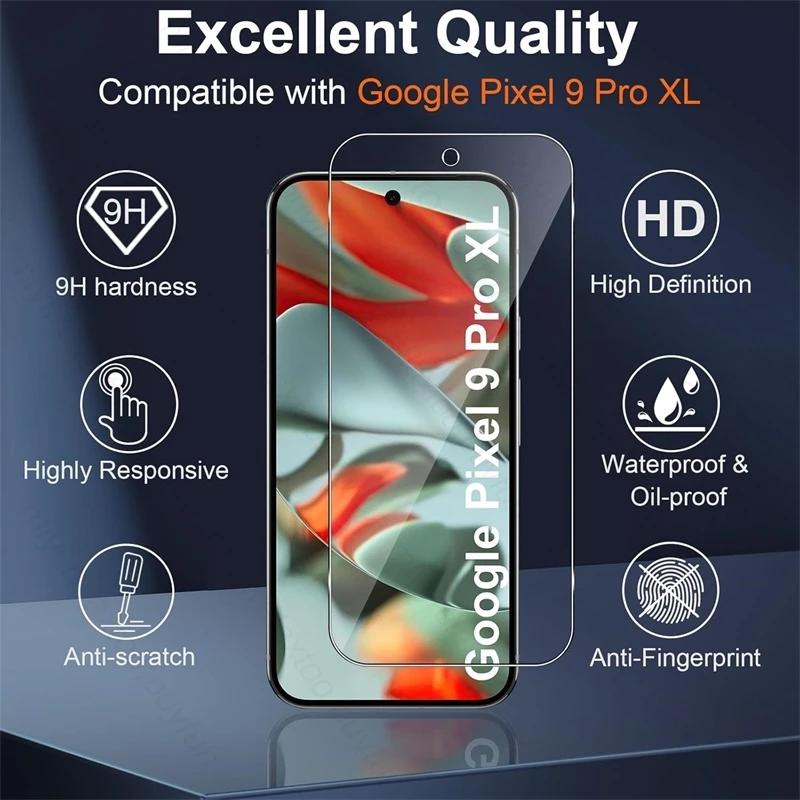4-in-1 Displayschutz aus gehärtetem Glas für Google Pixel 9, Pixel 9 Pro, Pixel 9 Pro XL 5G