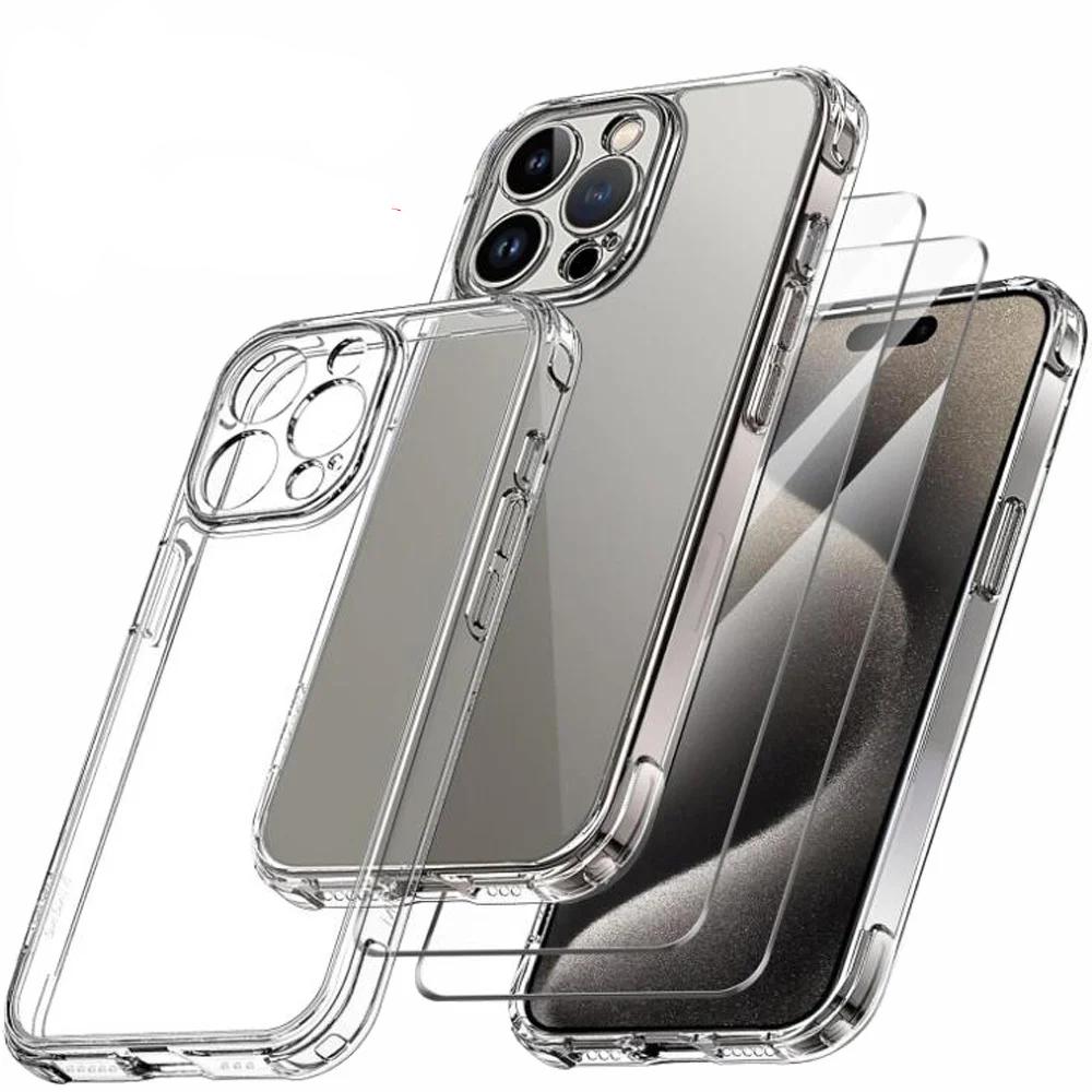 Transparente Hülle für iPhone 16/15 Pro Max & Bildschirmglas – Schutzhülle für iPhone 16/15/14/13/12/11 Pro und Mini